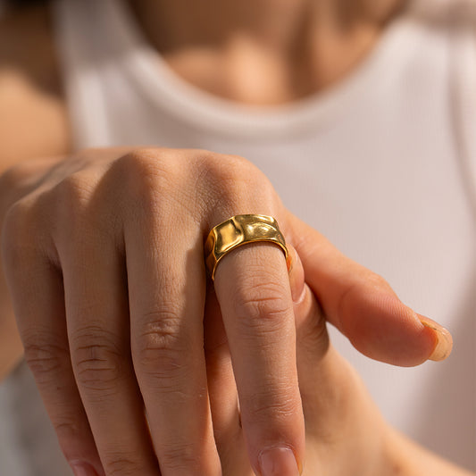 Wrinkled Wave Open Ring: 18K Gold Plated