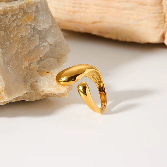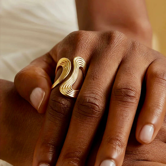 Water Wave Open Ring: 18k Gold Plated